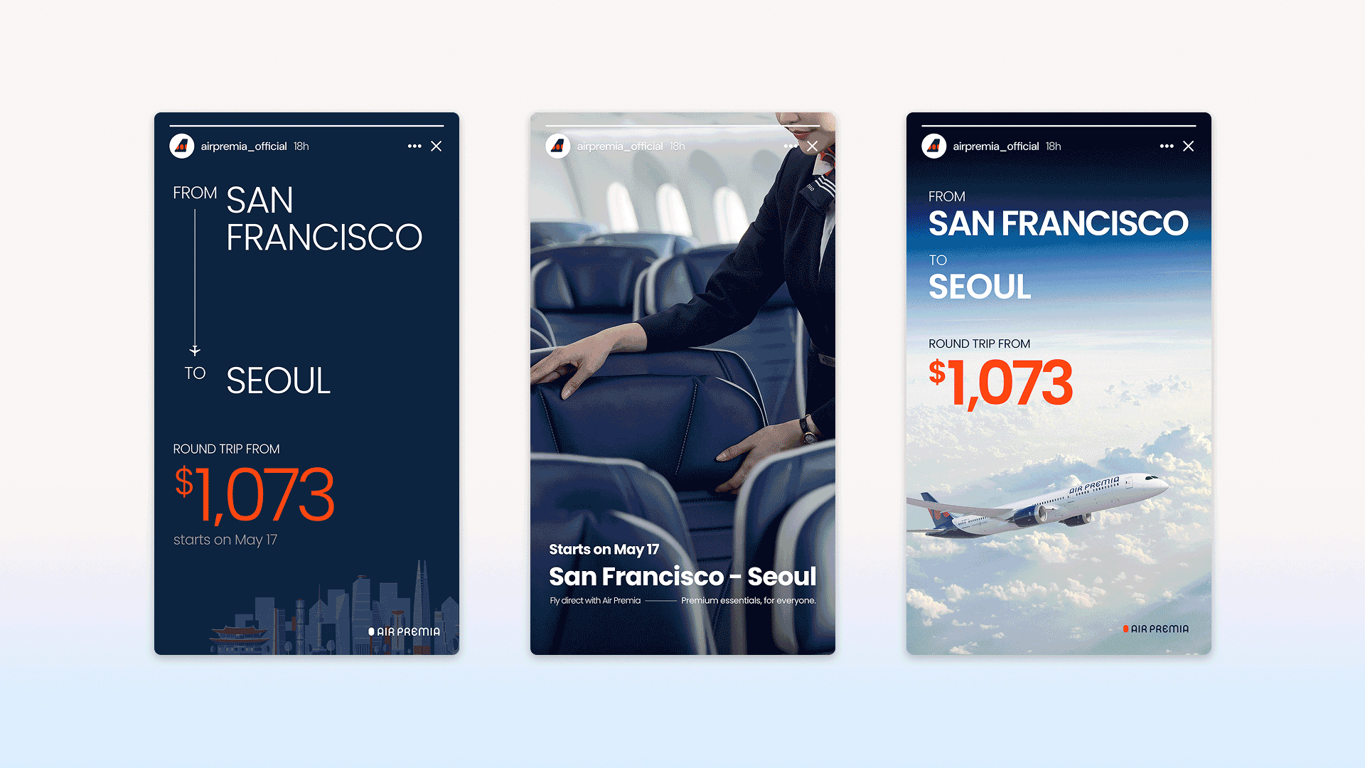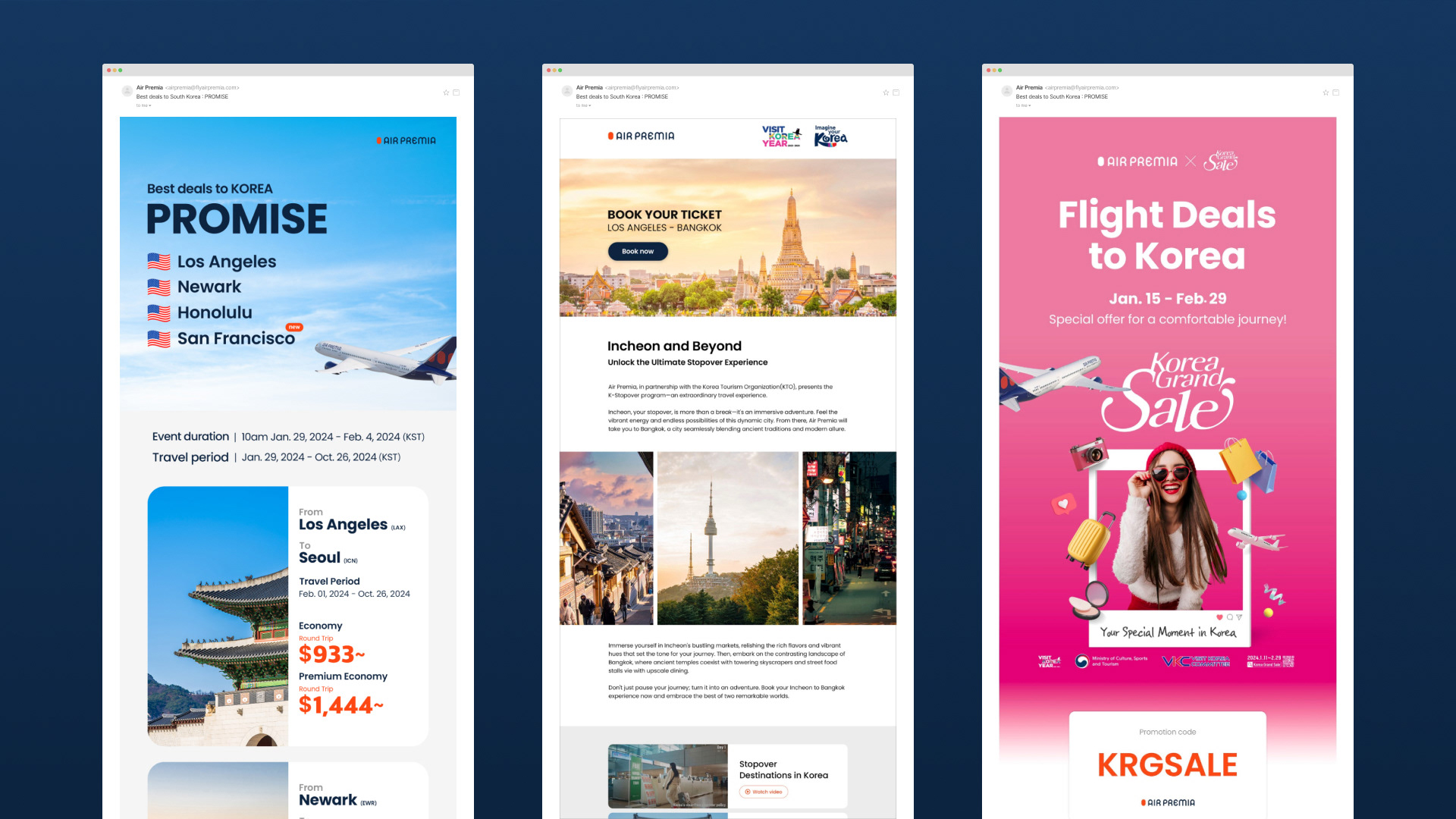 For Air Premia’s seasonal flight promotions, I created visuals to highlight special offers and seasonal routes across Korean, English, and Japanese markets. Each design was tailored to the cultural context of its audience while ensuring clear messaging and maintaining brand identity.
