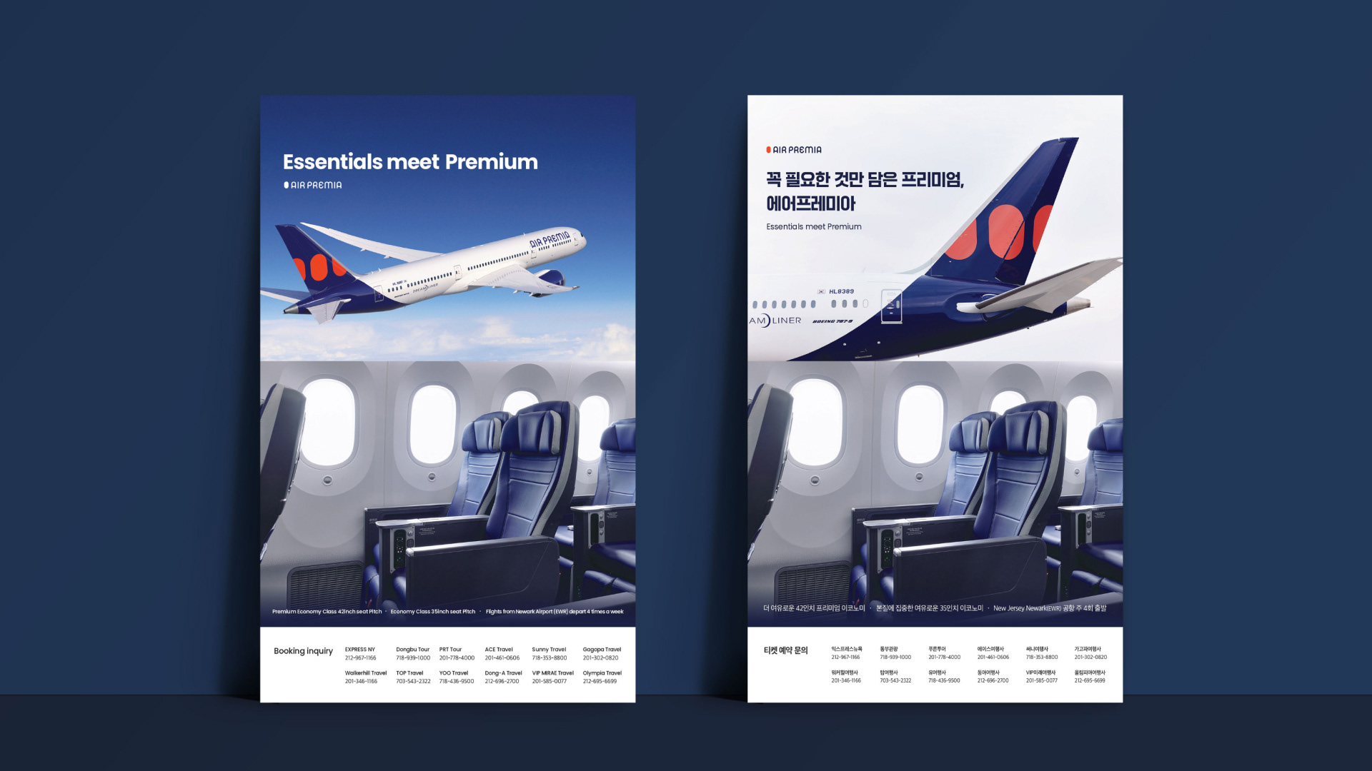 To support Air Premia’s marketing efforts in New Jersey and Los Angeles, I designed multipurpose brochures for use in advertisements and travel magazines. The goal was to highlight the airline’s spacious and comfortable economy seats, making them stand out from competitors and attract potential travelers. I used a prominent photo of the seat to convey comfort and space, while following the brand guide to maintain consistency in colors, fonts, and slogan.