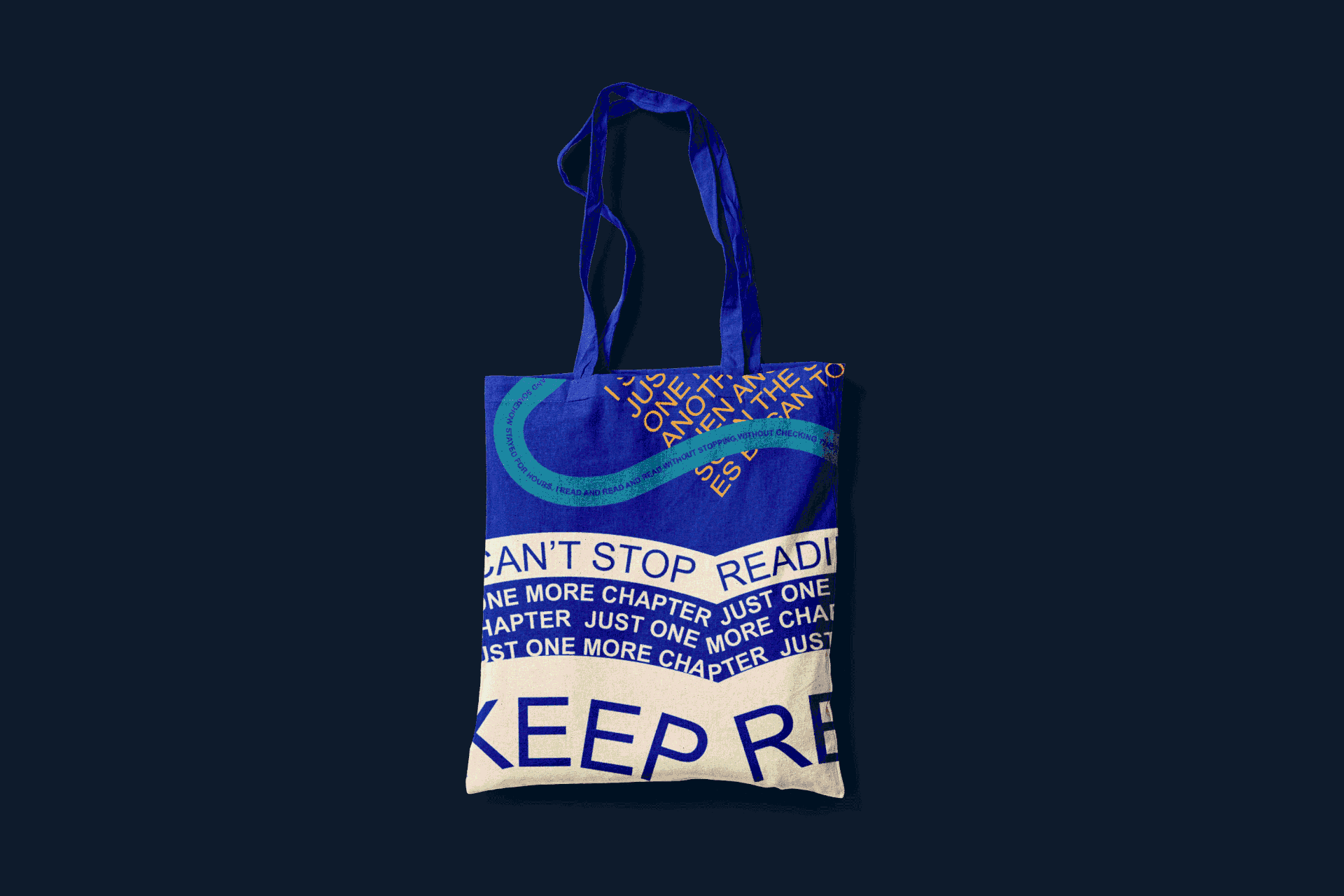 This key visual was designed as a typographic pattern that could be applied across merchandise such as tote bags, mugs, and bookmarks.